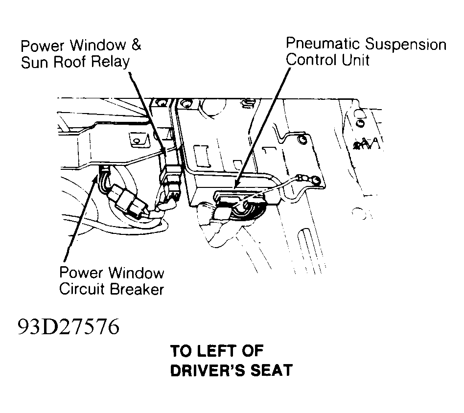 | Pneumatic Suspension Control Unit | On left side of driver's seat, in floor. See Figure . | |