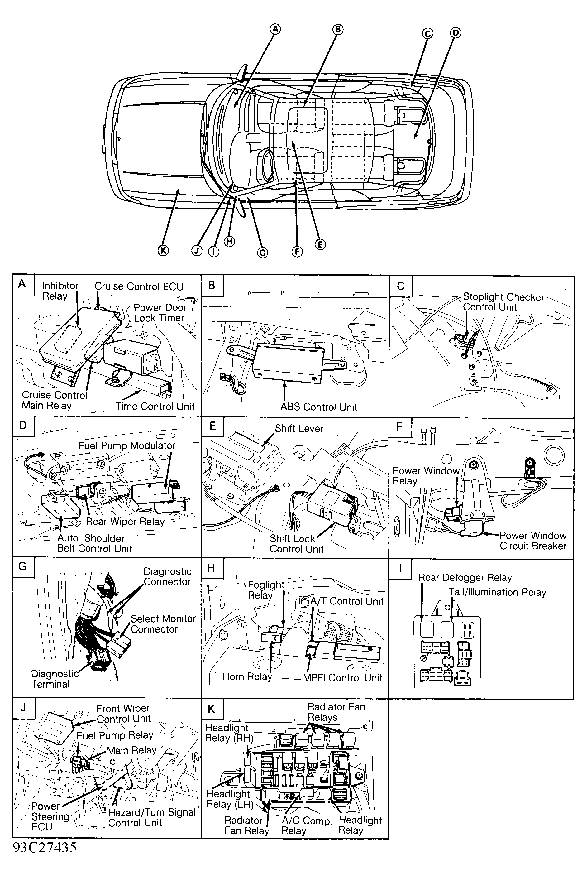 | Power Window Circuit Breaker | On bracket, under driver's seat. See Figure . | |