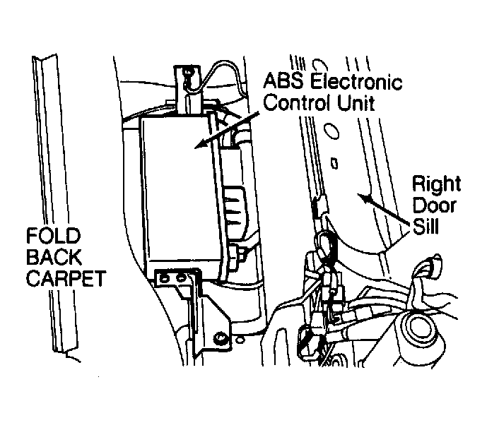 - Ensure ignition is off. Raise and support vehicle. Ensure ABS control unit harness connector is disconnected. See Figure