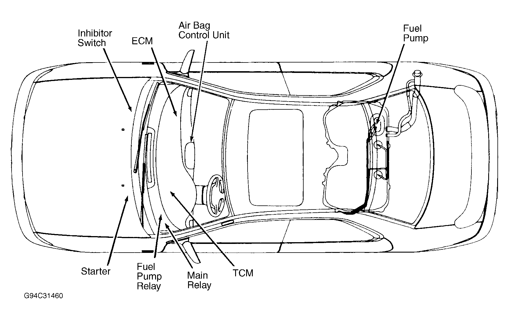 | Air Bag Control Unit | Under center of dash, on floor tunnel. |