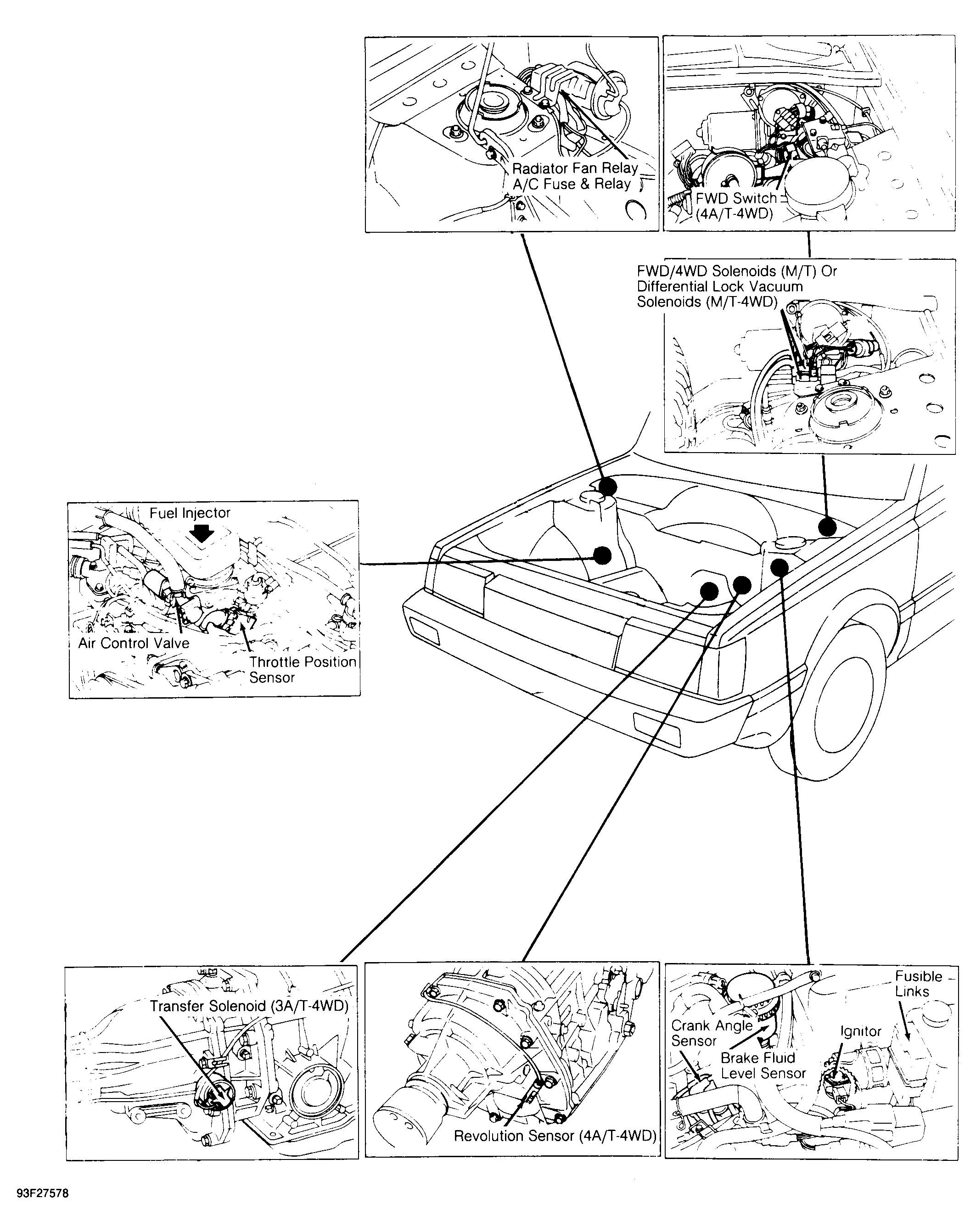 | A/C Fuse | Attached to rear of right strut tower, next to A/C relay. See Figure . |