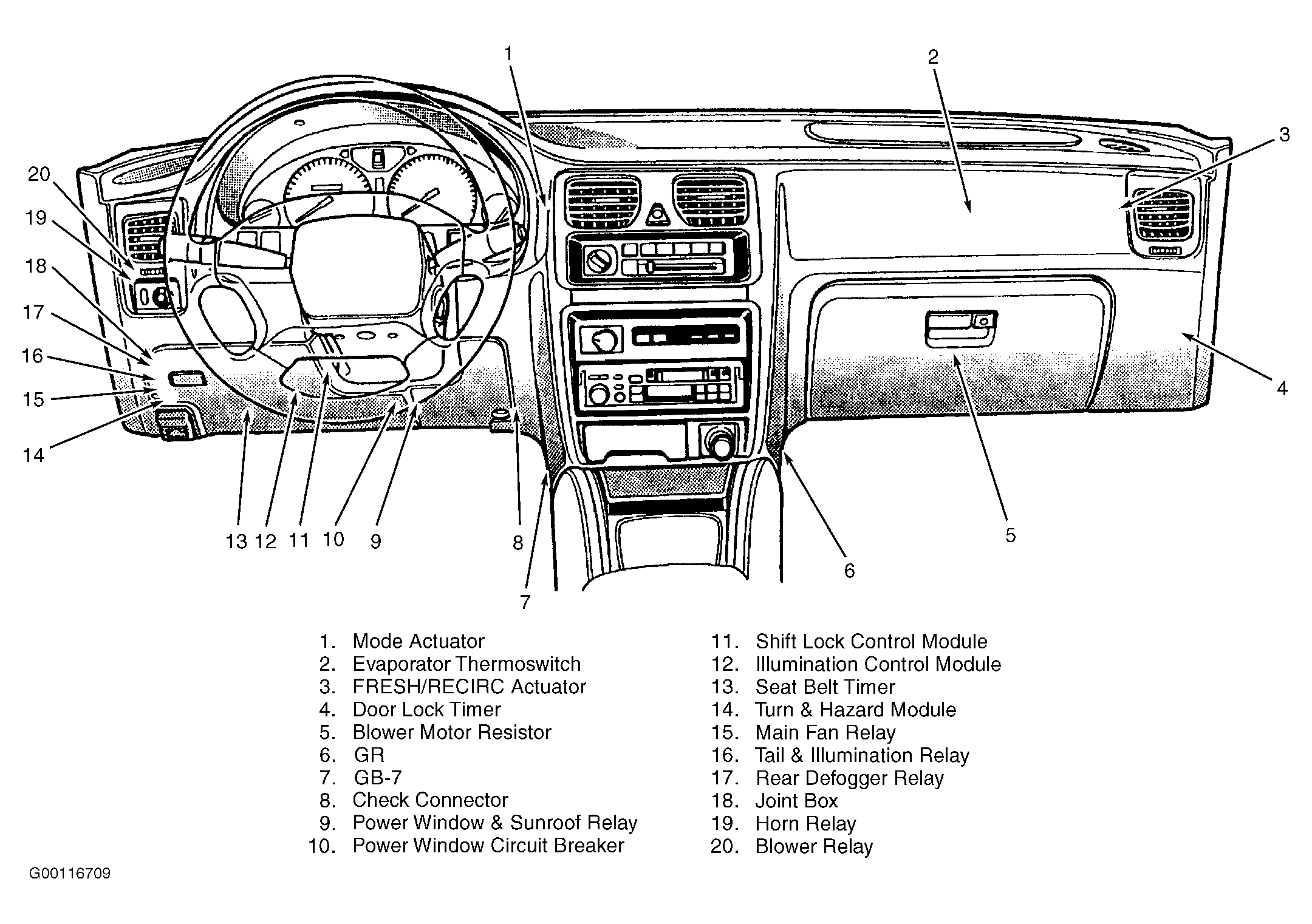 | Shift Lock Control Module | Behind dash, left of steering column. See Figure. |