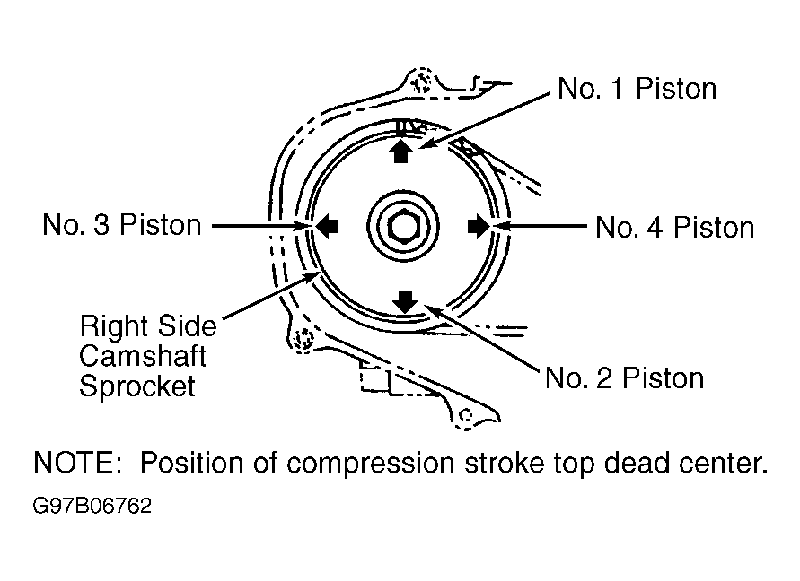 - Set cylinders No. 3, No. 2 & No. 4 to TDC by turning crankshaft pulley clockwise 90 degrees until arrow lines up to appropriate cylinder See Fig 1 . Reinstall parts removed in reverse order.
