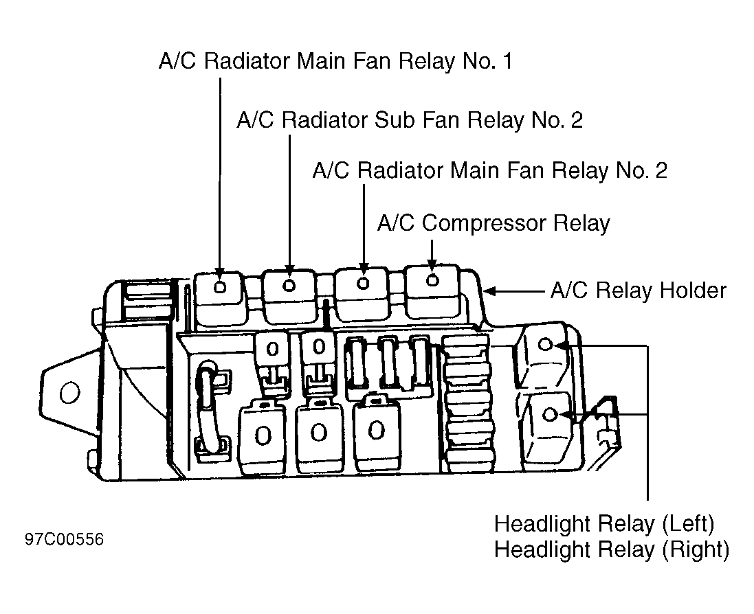 | A/C Relay Holder | On left side of engine compartment. See Figure. |