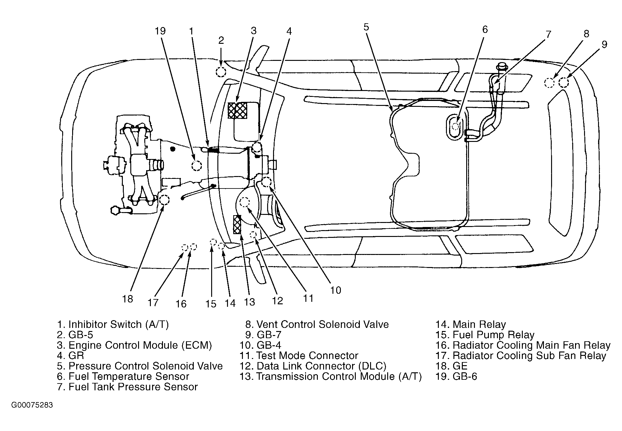 | Fuel Gauge Sub Module | On top of fuel tank. See Figure. |