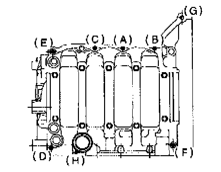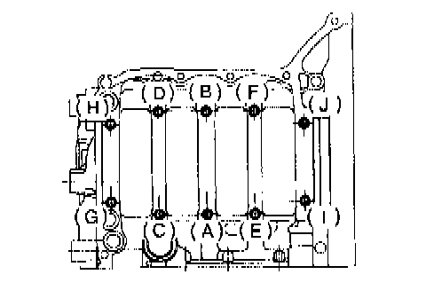 2. Tighten 10 mm cylinder block connecting bolts in alphabetical sequence.