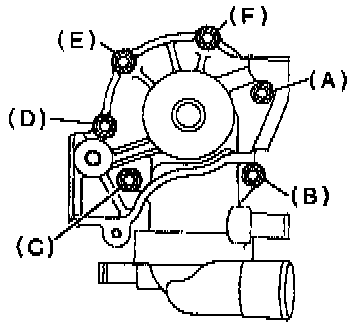 5. Tighten bolts (C), (D), (E) and (F) to 15 Nm (1.5 kg-m, 11 ft. lbs.).