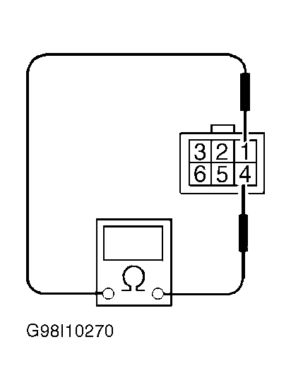- Check resistance between rear gate latch switch harness connector terminals. If resistance is less than 10 ohms, go to next step. If resistance is 10 ohms or greater, replace rear gate latch switch.
