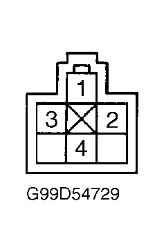 - Disconnect harness connectors from rear gate latch switch and security control module. Check resistance between rear gate latch switch harness connector terminal No. 1 (Yellow/Blue wire) and security control module harness connector terminal No. 4. If resistance is less than 10 ohms, go to next step. If resistance is 10 ohms or greater, repair circuit between rear gate latch switch and security control module harness connectors.