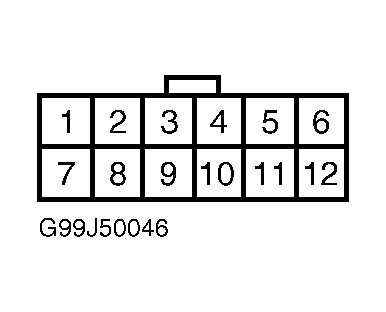 - Turn ignition off. Disconnect 12-pin harness connector from fuse box. Check resistance between security control module harness connector terminal No. 12 and fuse box harness connector terminal No. 10. See Fig 1 and Figure . If resistance is less than 10 ohms, go to next step. If resistance is 10 ohms or greater, repair circuit between security control module and main fuse box.