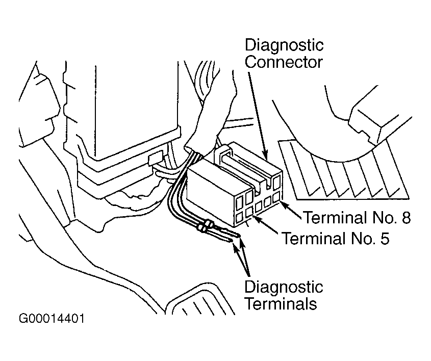 - Locate ABS diagnostic connector. See Figure. Turn ignition off. Connect one diagnostic terminal to terminal No. 8 of DLC. Turn ignition on. Determine Diagnostic Trouble Code (DTC) by counting number of times ABS warning light flashes. Up to 3 codes can be stored at a time, with the most recent code displayed first.