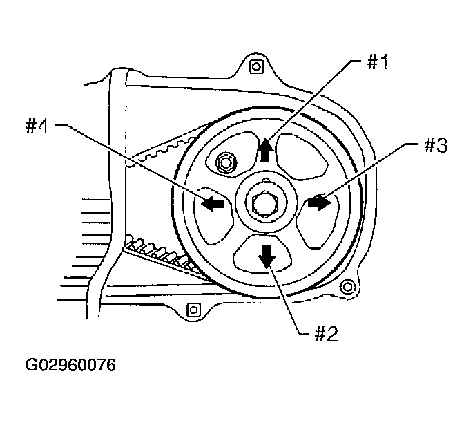 Application Clearance In. (mm) 2.2L & 2.5L Intake .007-.009 (.18-.23) Exhaust .009-.011 (.23-.27) - Set cylinders No. 3, 2 and 4 to TDC by turning crankshaft pulley clockwise until arrow on camshaft sprocket is in correct position. See Fig 1. When adjustment is complete, reinstall components in reverse order of removal.