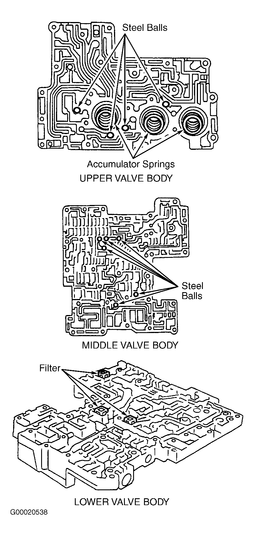 During minor overhaul, complete disassembly and cleaning of valve body is not necessary. If any contamination is present in transaxle assembly, completely disassemble valve body and thoroughly clean all components. See Figure