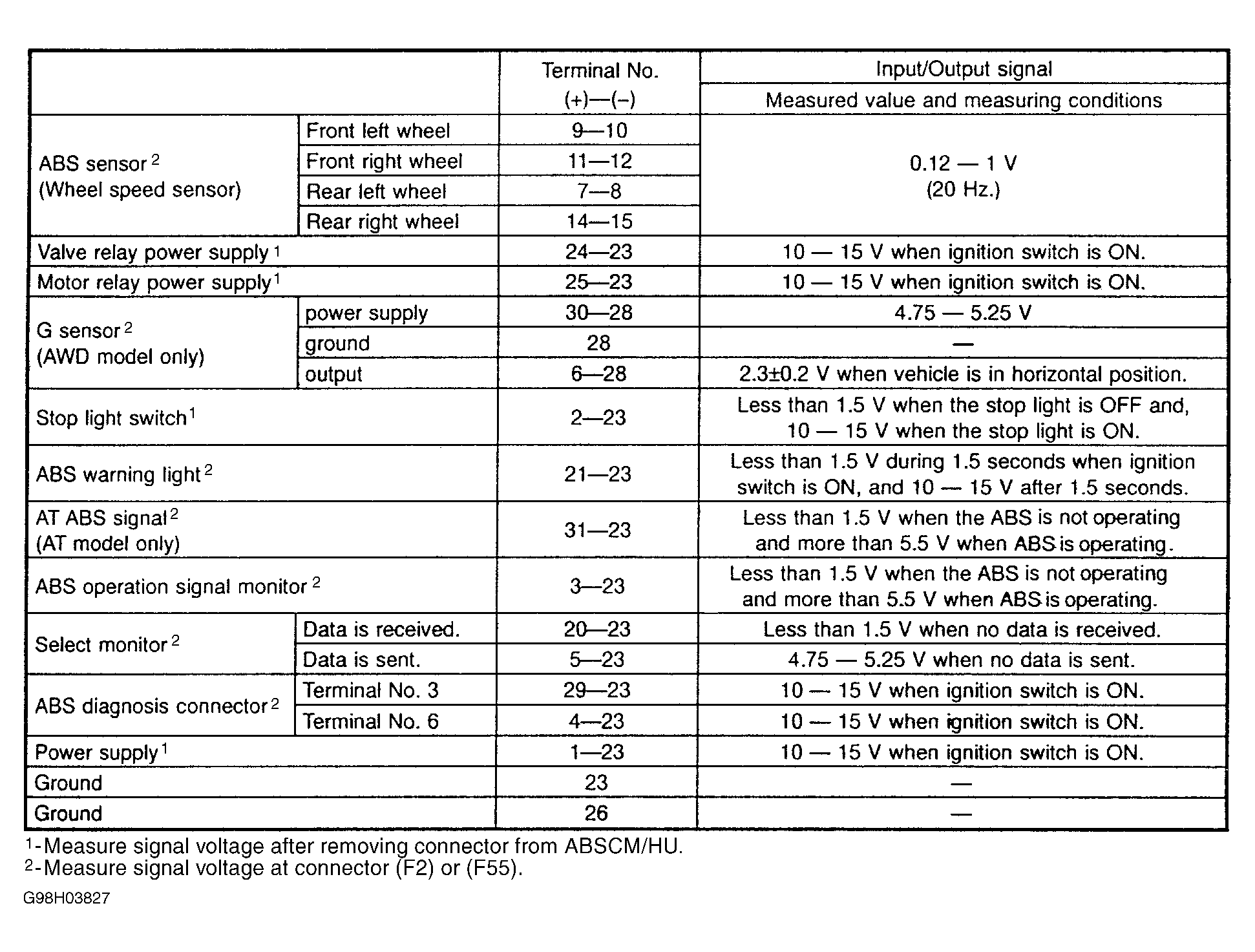 For additional voltage specifications, see ABS control module pin voltage chart. See
