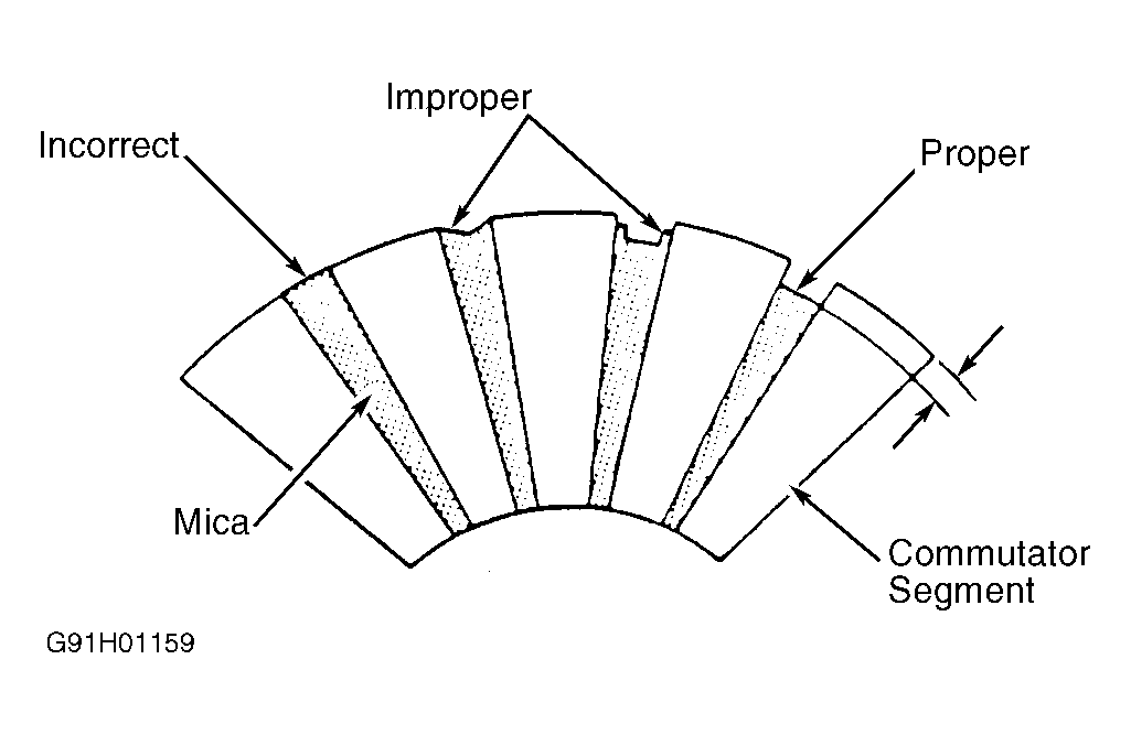 - If correcting runout condition, DO NOT reduce commutator diameter below specification. Undercut mica insulation if it is even with or higher than commutator surface. See Fig 1. See STARTER SPECIFICATIONS .