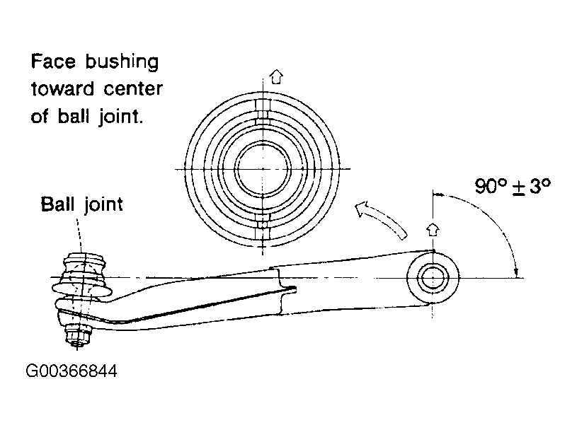Install front bushing in correct direction as shown in
