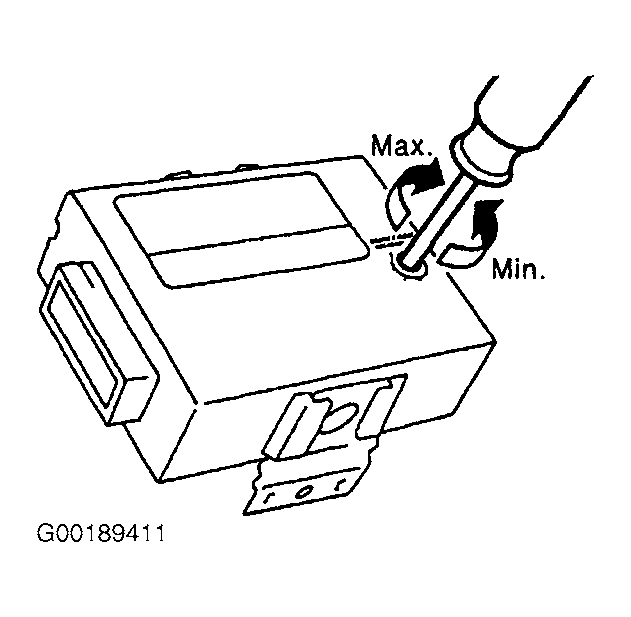 Remove security control module. See SECURITY CONTROL MODULE under REMOVAL & INSTALLATION. Adjust the sensitivity adjusting screw in the security control module. Turn clockwise for maximum sensitivity or counterclockwise for minimum sensitivity. See Fig 1 . Be sure to plug adjusting screw hole. Install security control module. Perform impact sensitivity test. See SECURITY CONTROL MODULE under COMPONENT TESTS.