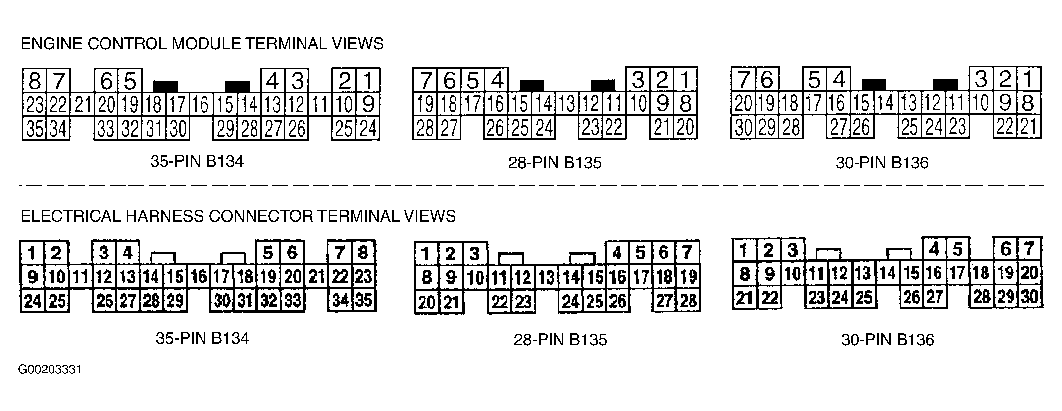. For ECM terminal and electrical harness connector identification, see Figure. For identification of circuits, terminals and wire colors referenced in the following testing, see ENGINE PERFORMANCE in appropriate SYSTEM WIRING DIAGRAMS article in ELECTRICAL.