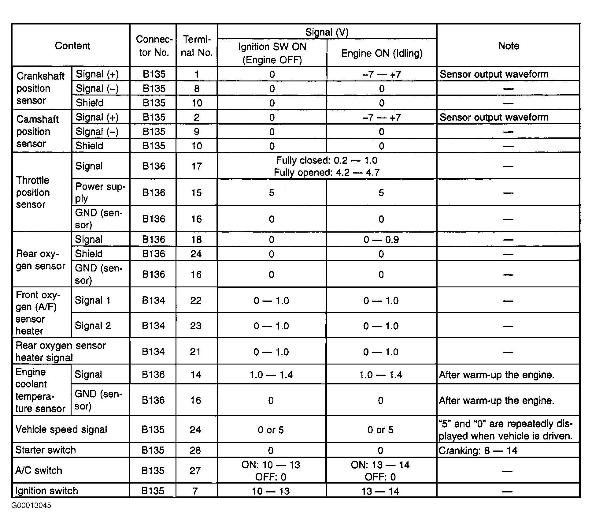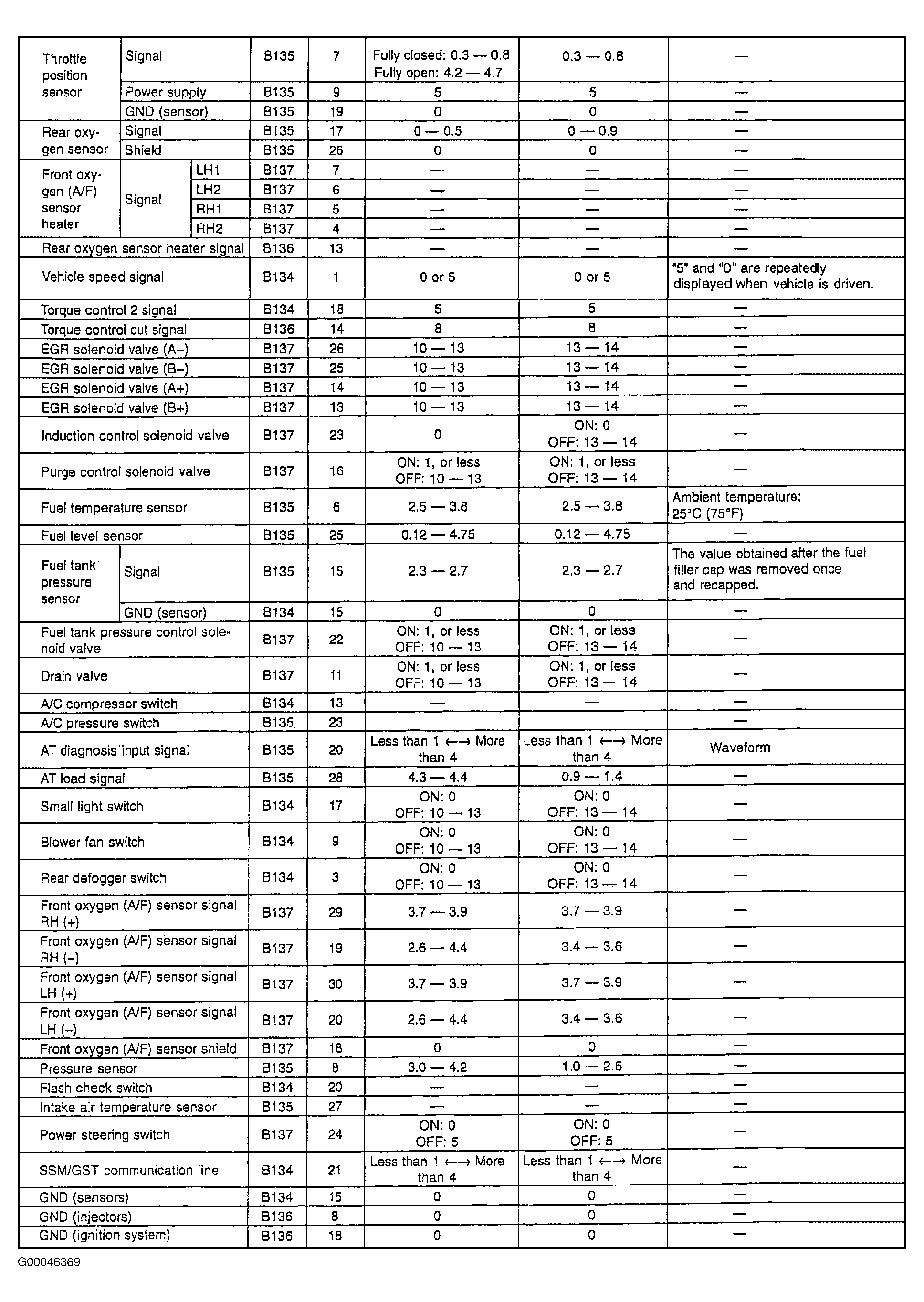 Engine Controls - Pin Voltage Charts: Testing
