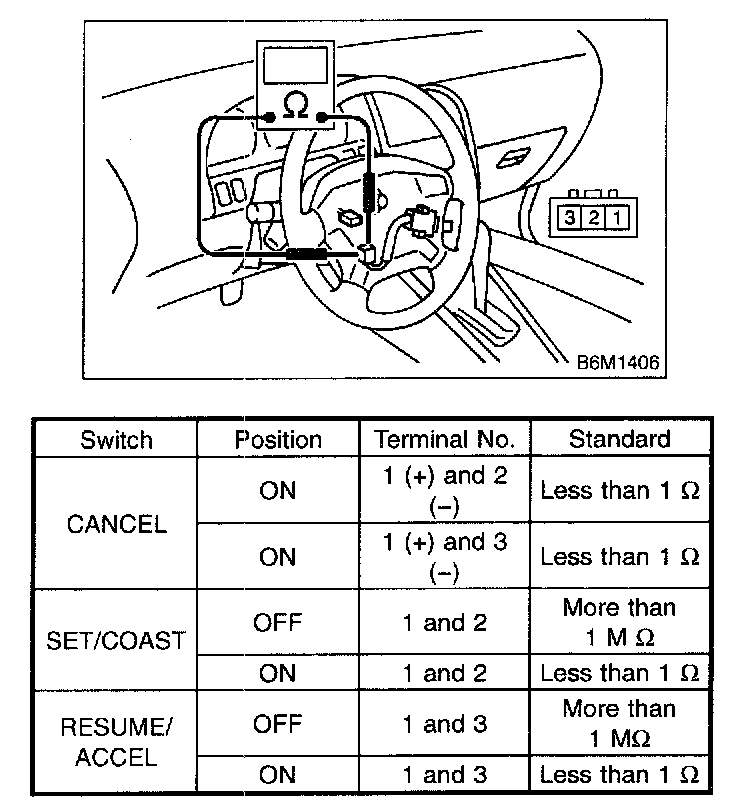 Measure cruise control command switch resistance.