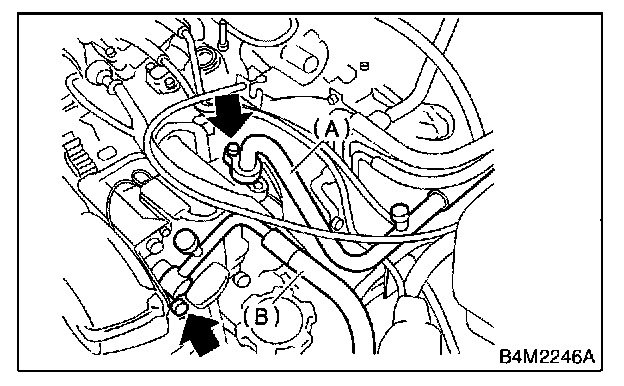 6. Disconnect low-pressure hose (A) and high-pressure hose (B).