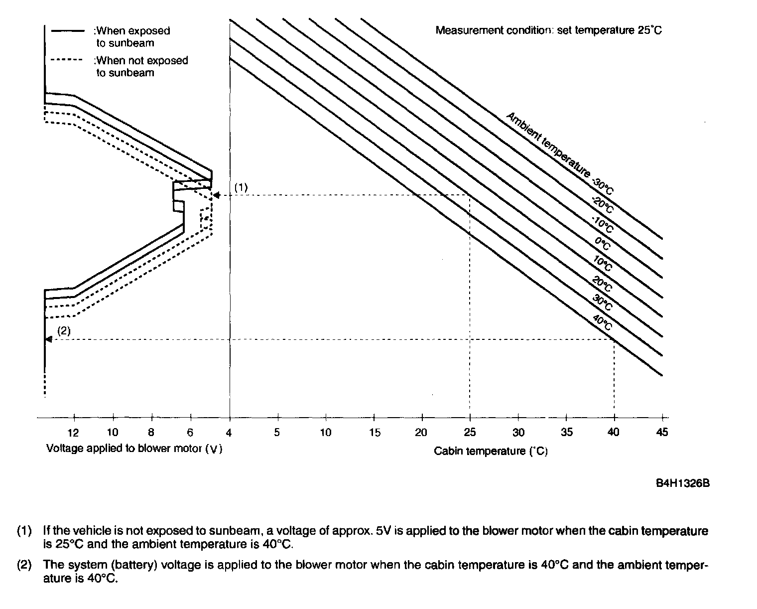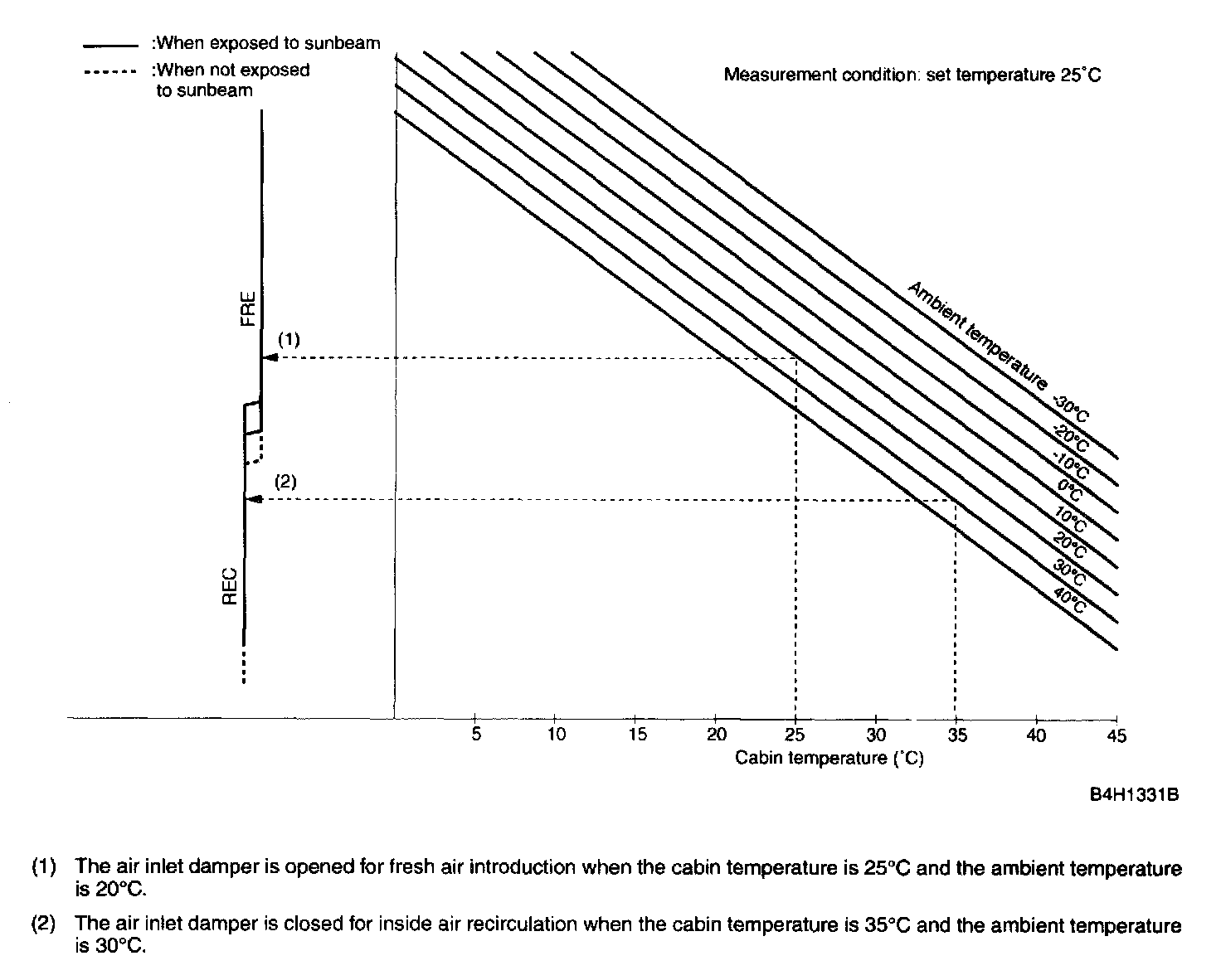 The minimum air flow is corrected by the sunbeam intensity if the VENT or BI-LEVEL mode is selected.