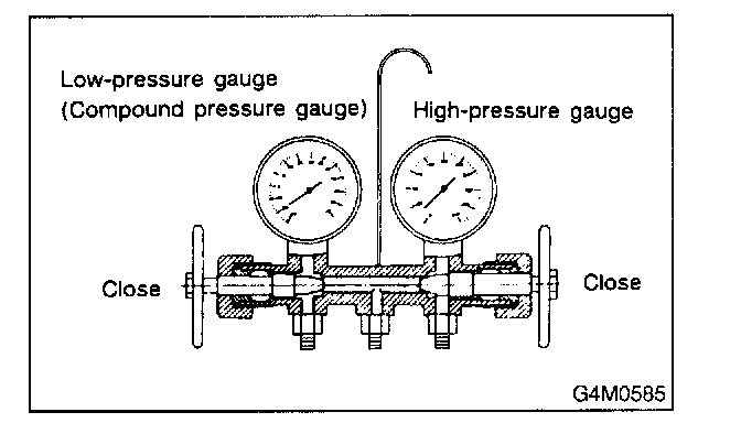 3. Close the valves on the low-/high-pressure sides of the manifold gauge set.