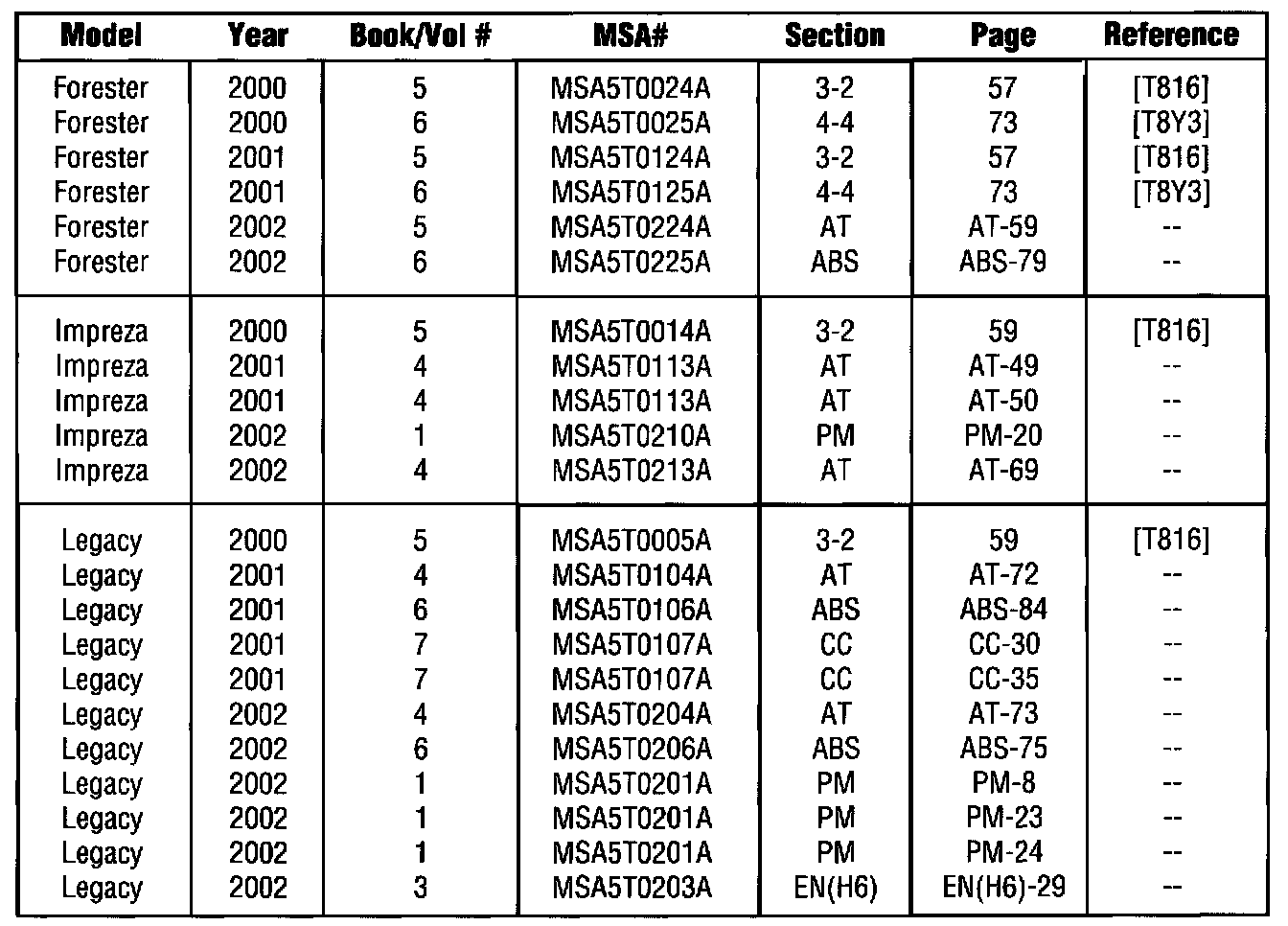 Home >> Subaru >> 2002 >> Outback L.L.Bean Edition AWD F6-3.0L >> Repair and Diagnosis >> Powertrain Management >> Computers and Control Systems >> Engine Control Module >> Technical Service Bulletins >> Service Manual - Multiple Systems Updates/Corrections