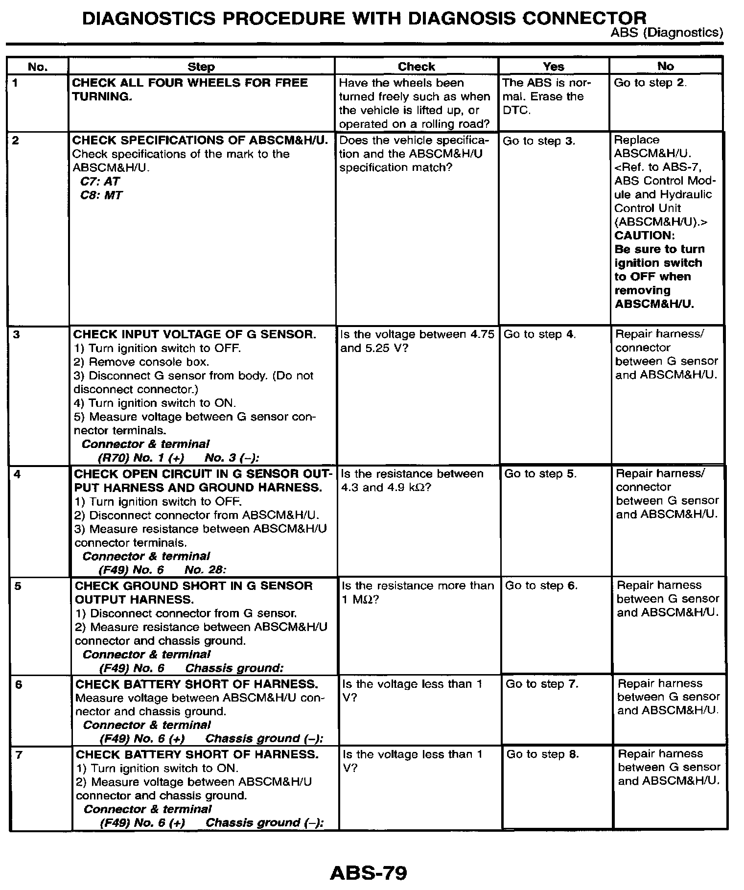Diagnostic Procedure with Diagnosis Connector - Page ABS-79