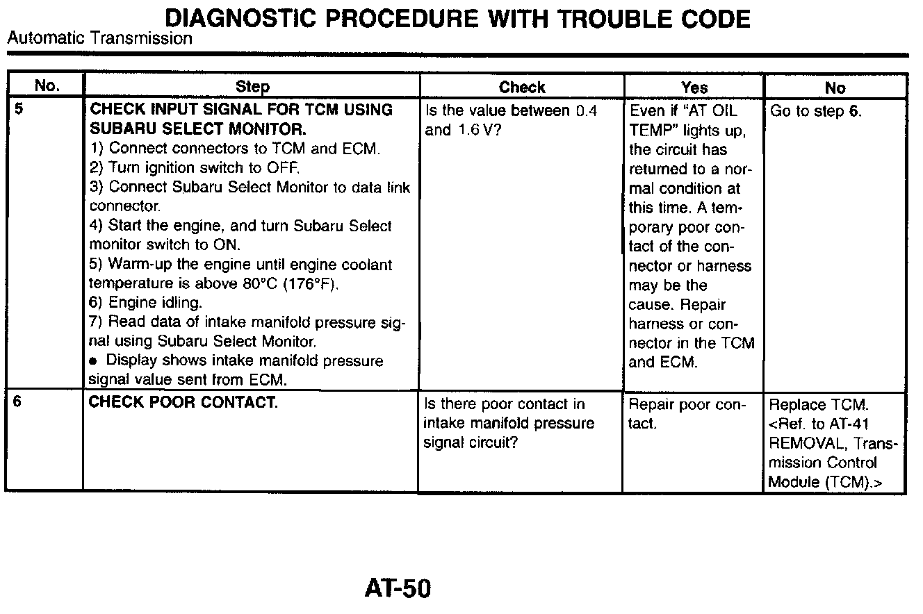 Diagnostic Procedure with Trouble Code - Page AT-50