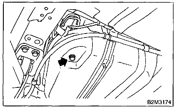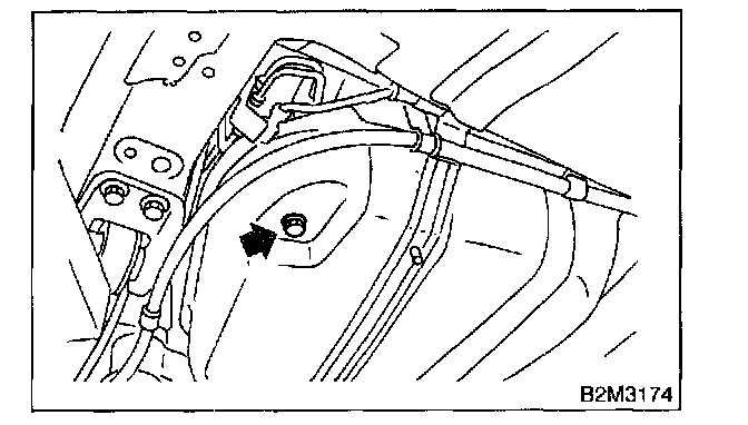 4. Drain fuel from fuel tank. Set a container under the vehicle and remove drain plug from fuel tank.