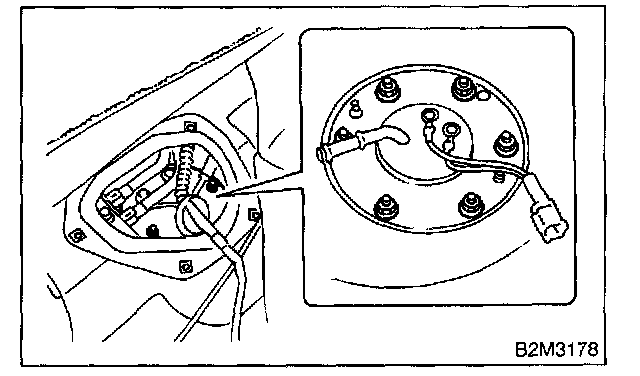 11. Remove bolts which install fuel sub level sensor on fuel tank.