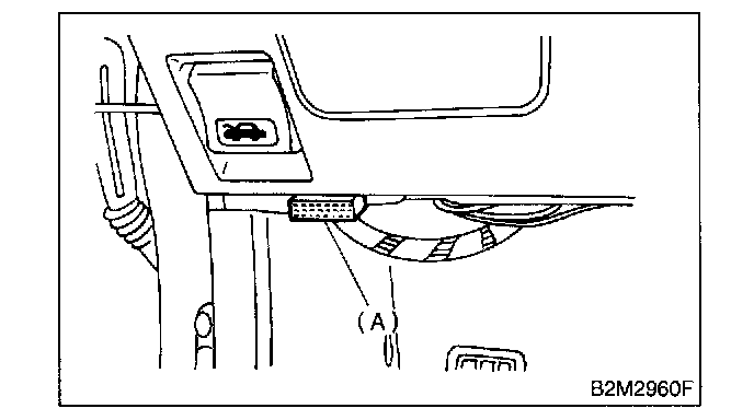 2. Open the cover and connect the OBD-II general scan tool to the data link connector (A) located in the lower portion of the instrument panel (on the driver's side).