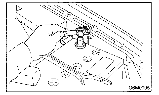 1. Disconnect battery cables and then remove battery and battery carrier.