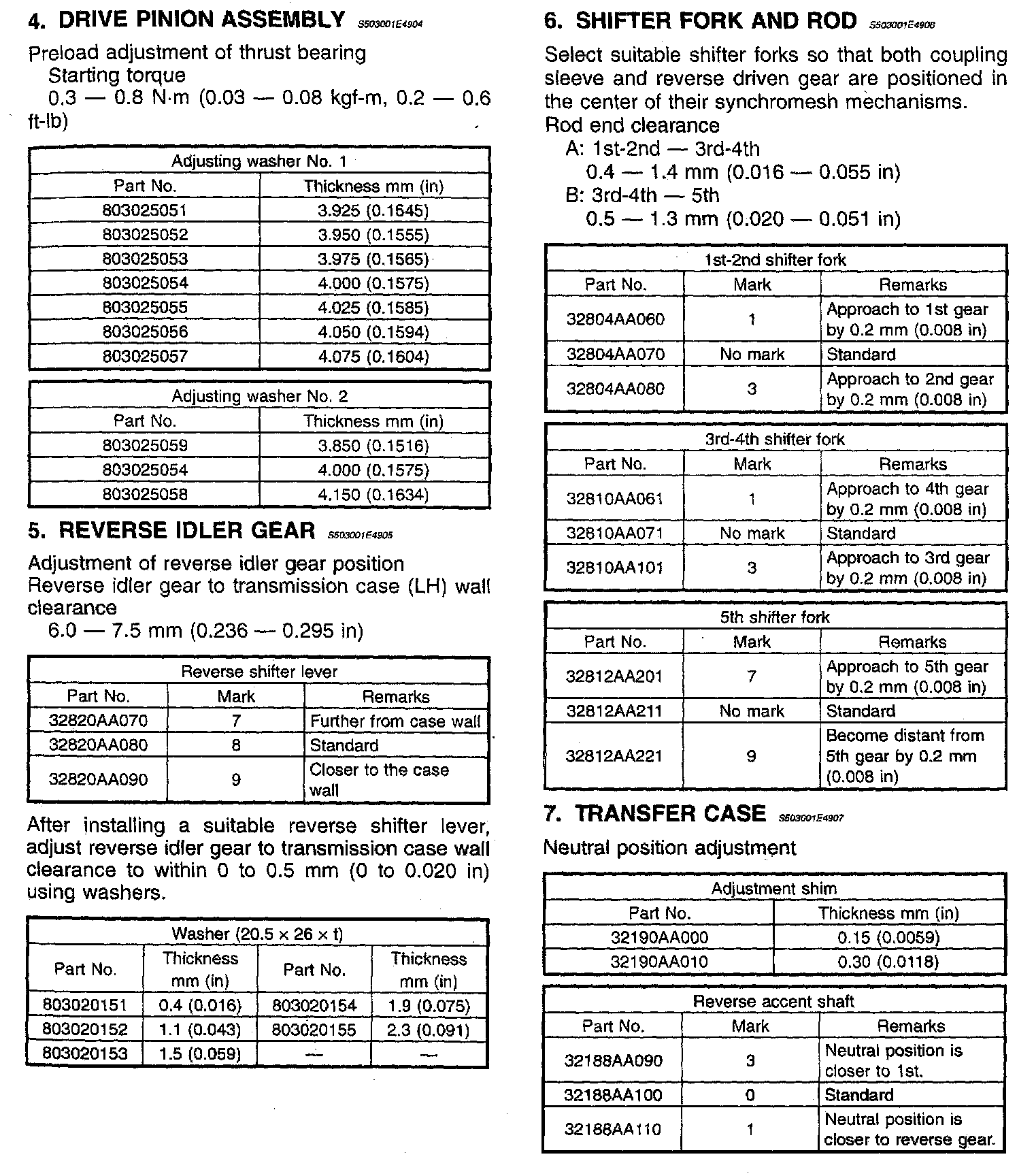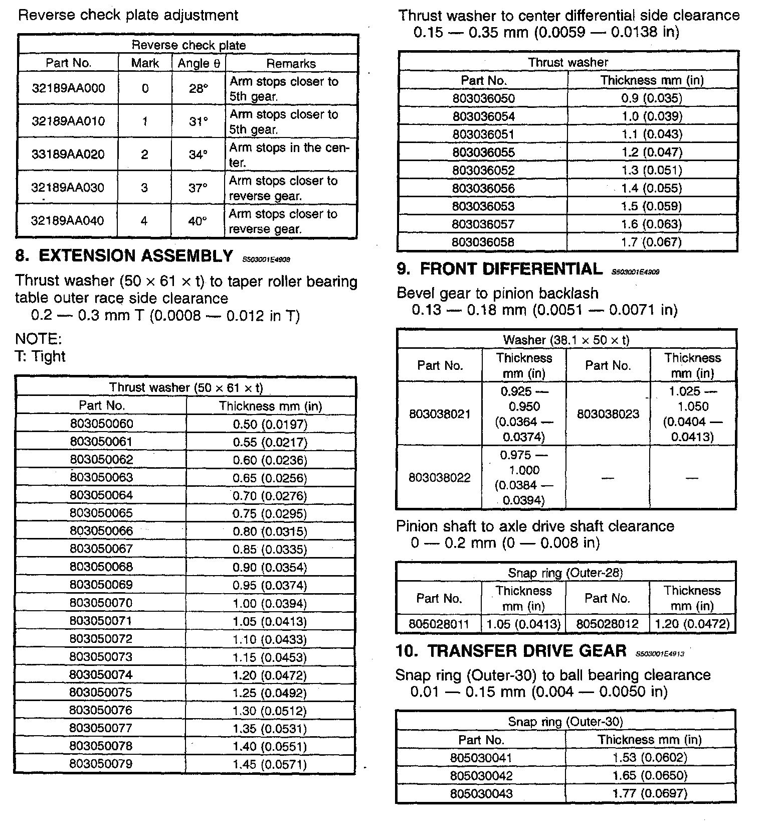 5-spd M/T, Transmision Service/Overhaul Data: