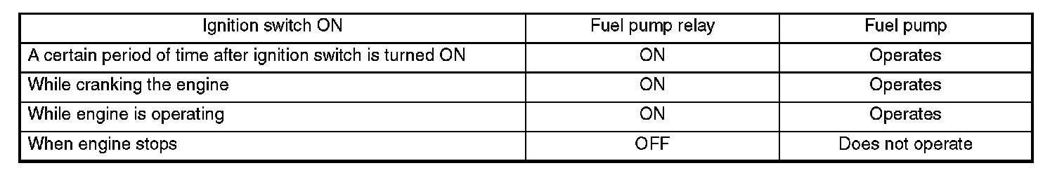 Using the signal from the crankshaft position sensor, the ECM controls operation of the fuel pump by turning its relay ON or OFF. To improve safety, the fuel pump is stopped if the engine stalls with the ignition switch ON.