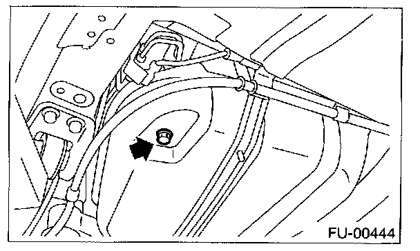 4. Drain fuel from fuel tank. Set a container under the vehicle and remove drain plug from fuel tank.