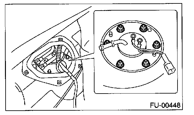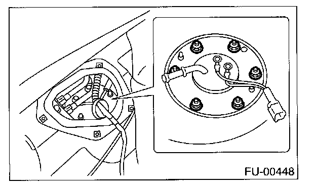 11. Remove bolts which install fuel sub level sensor on fuel tank.