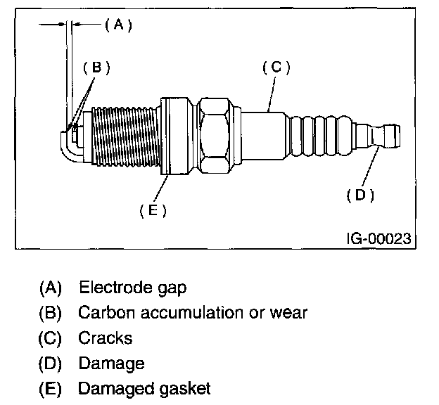 INSPECTIONCheck electrodes and inner and outer porcelain of plugs, noting the type of deposits and the degree of electrode erosion.