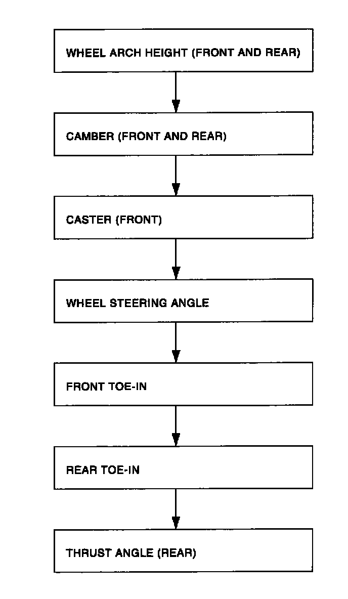Check the following items before taking wheel alignment measurement.