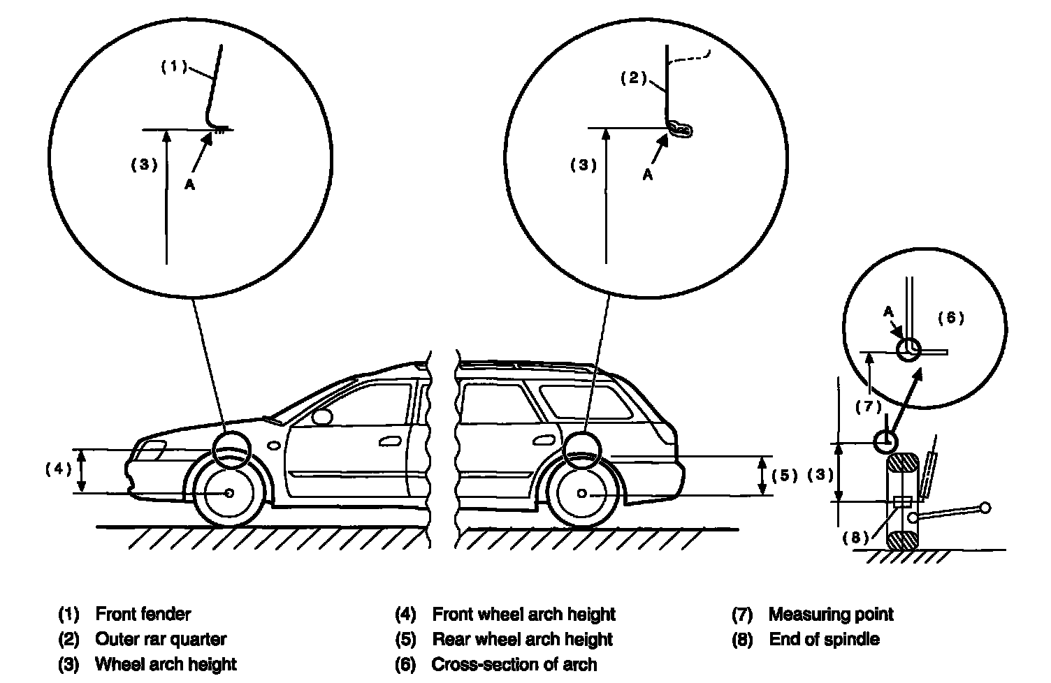 5. Measure distance between measuring point "A" and center of wheel.