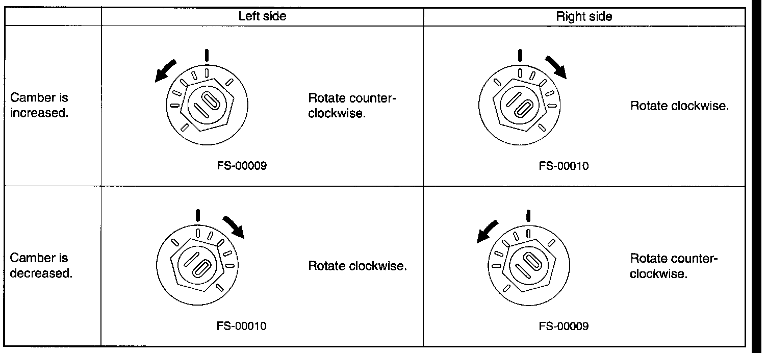 NOTE: Refer to the "SPECIFICATIONS" for the camber values.