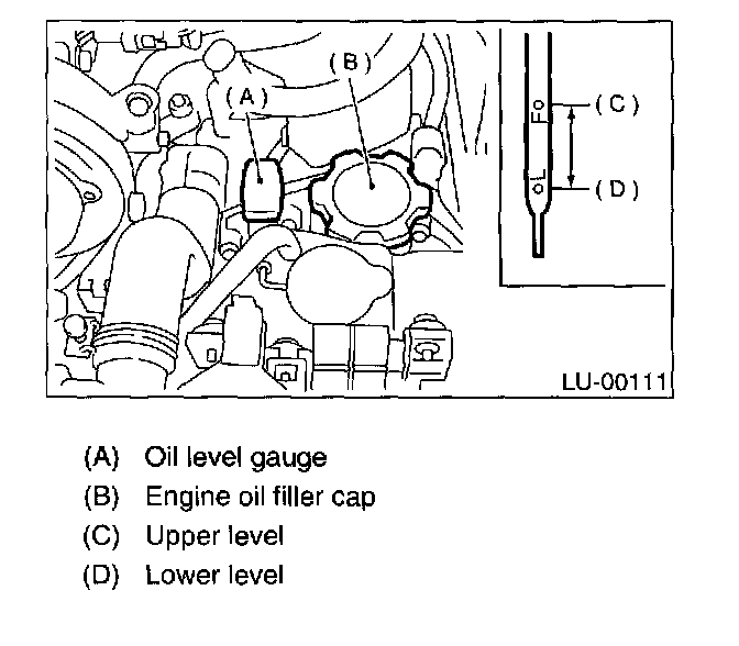 NOTE: Just after driving or during warm-up, engine oil level may rise above the "F" mark.