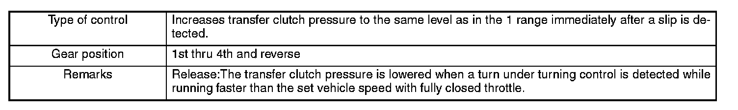 - The transfer clutch pressure is applied to the multi-plate clutch (LSD) and engages the clutch to a controlled degree.