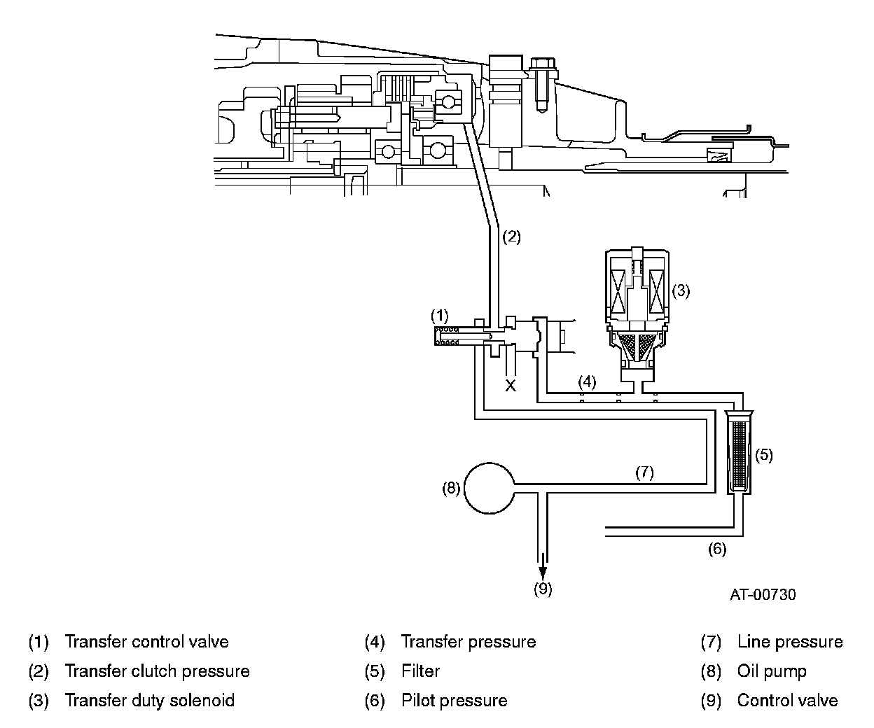 - The line pressure directly led to the transfer control valve, on the other hand, is regulated by the transfer control valve and becomes the transfer clutch pressure.