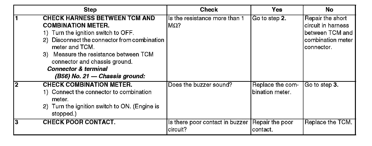 Buzzer output signal circuit is open or shorted.