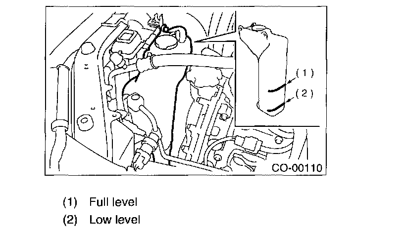 CAUTION: The SUBARU Genuine Coolant containing antifreeze and anti-rust agents is especially made for SUBARU engine, which has an aluminum crankcase. Always use SUBARU Genuine Coolant, since other coolant may cause corrosion.