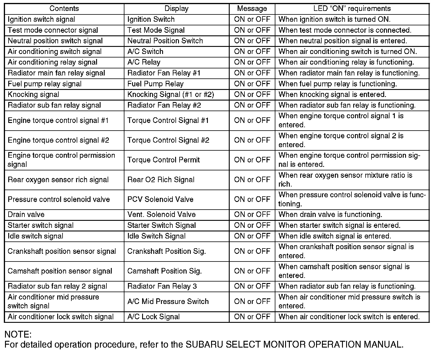 - For detailed operation procedure, refer to the SUBARU SELECT MONITOR OPERATION MANUAL.