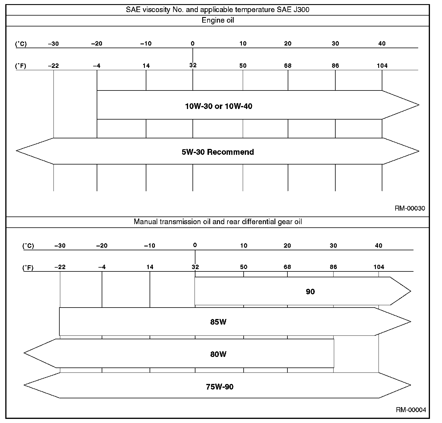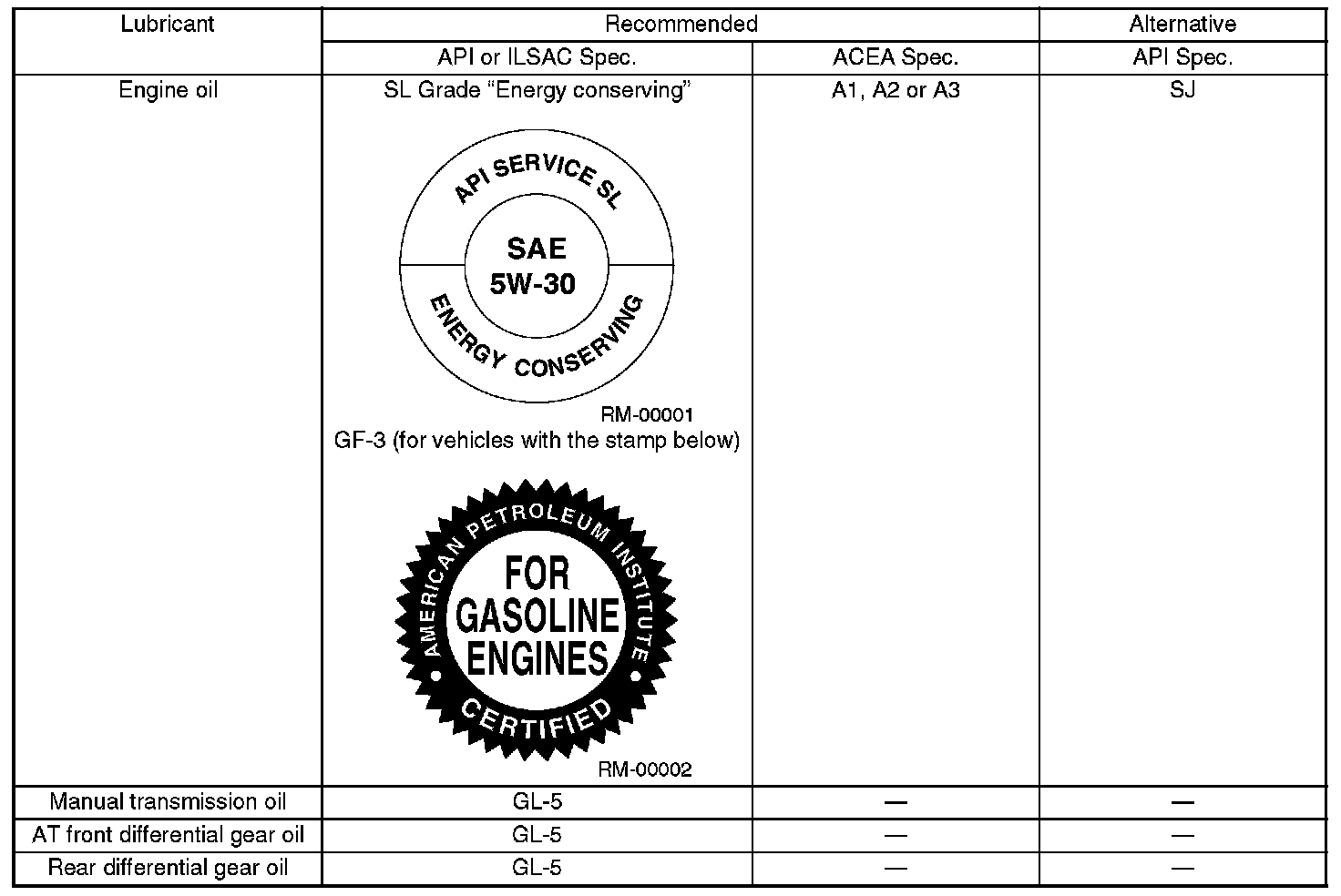 Use either the lubricants in the table or equivalent lubricants. See the table to choose the correct SAE viscosity.