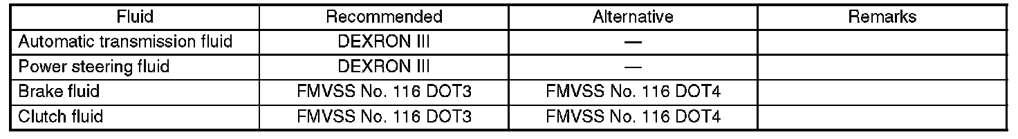 Use the fluids specified in the table. Do not mix two different kinds or makes of fluid.